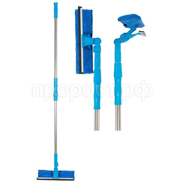 Благодаря шарнирному механизму насадку можно вращать в двух диапазонах. Длинная телескопическая рукоятка (до 120 см) позволяет использовать стекломой практически для любых балконов, лоджий и эркеров сложных форм. Насадка из микрофибры хорошо впитывает влагу и не оставляет разводов. При хранении стекломой занимает мало места.