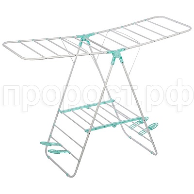 Металлические прутья увеличенной толщины (диаметр 9 мм) не прогибаются, позволяют сушить белье без заломов, ускоряя сушку за счет лучшей вентиляции. Снабжена пластиковыми держателями для сушки обуви.