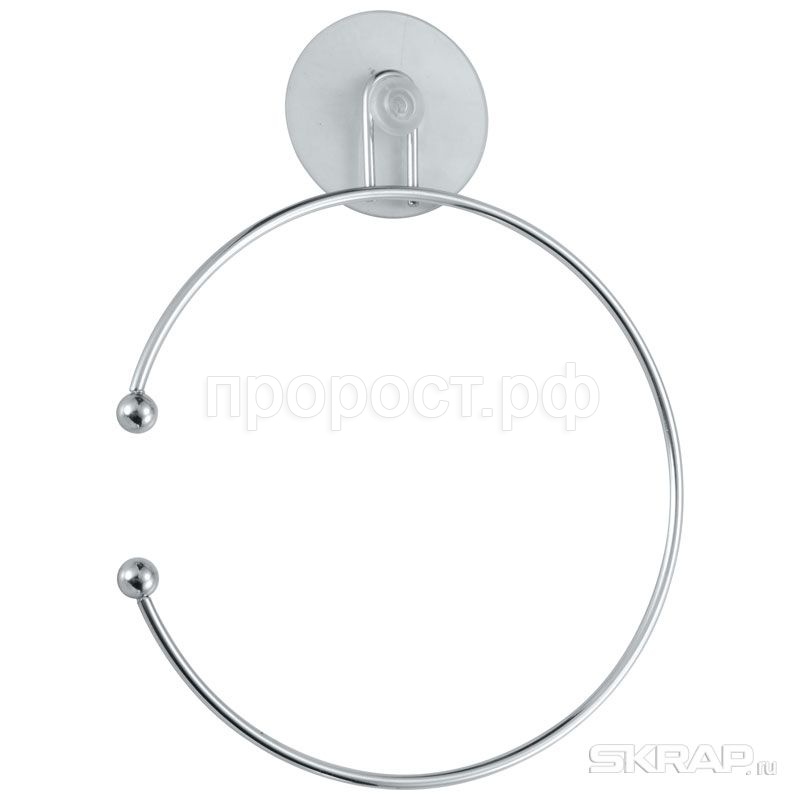 Полотенцедержатель кольцом изготовлен из хромированной стали, которая надежно защищена от коррозии. Изделие крепится к стене с помощью присоски (входит в комплект).