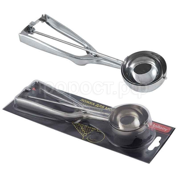 Ложка для мороженого механическая, удобна в процессе порционной подачи мороженого, риса, жидкого теста и других блюд.