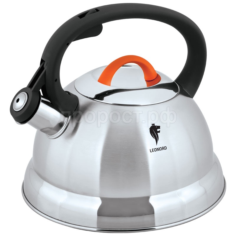 Чайник снабжен свистком и устройством открывания носика на ручке;