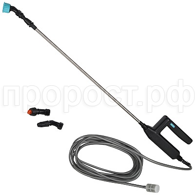 Ручной опрыскиватель имеет уникальную конструкцию, которая позволяет использовать распылительную аккумуляторную штангу, без бака. То есть распылять жидкость можно из любой емкости (ведра, садовой бочки и водоема). Несмотря на то, что аккумулятор и насос встроены непосредственно в рукоятку опрыскивателя, сама рукоятка имеет эргономичную форму и малый вес. Телескопическая штанга удлиняется до 110 см, с такой длиной удобно орошать кусты, деревья, работать в труднодоступных местах.