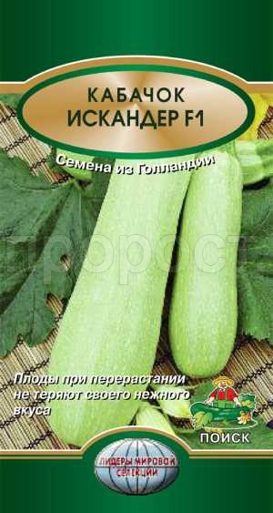 Плоды при перерастании не теряют своего нежного вкуса. Ранний высокоурожайный гибрид. Растение кустовое, компактное. Лист светло-зеленый до темно-зеленого, среднерассеченный, с пятнистостью. Плод цилиндрический с сужением к плодоножке, средней длины, светло-зеленый с белой пятнистостью. Масса 0,7 кг. Мякоть плотная, нежная. Вкус хороший. Рекомендуется для столовых целей и консервирования.