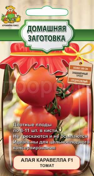Великолепные ровные вкусные плоды. Среднеспелый гибрид. Для защищённого грунта. От всходов до начала созревания плодов 105-110 дней. Растение высокорослое, нуждается в подвязке, формирует плотные красивые кисти по 8-11 плодов. Плоды слегка овальной формы, плотные, ярко-красные, массой 130-150 г. Не трескаются, не осыпаются. Устойчив к кладоспориозу, ВТМ. Для свежего употребления и цельноплодного консервирования.