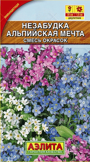 Красивая смесь незабудок. Кроме привычной голубой окраски, включает растения с белыми и розовыми цветками. Образует компактные кустики высотой 25-30 см, обильно цветущие около 50 дней весной и ранним летом. Мелкие цветочки Ø1,5 см собраны в рыхлые соцветия-завитки. Растения хорошо развиваются на солнечных и полутенистых участках с плодородными, умеренно влажными почвами. Используются для оформления цветников, хорошо сочетаются с маргаритками, примулами, весенними луковичными, анютиными глазками.