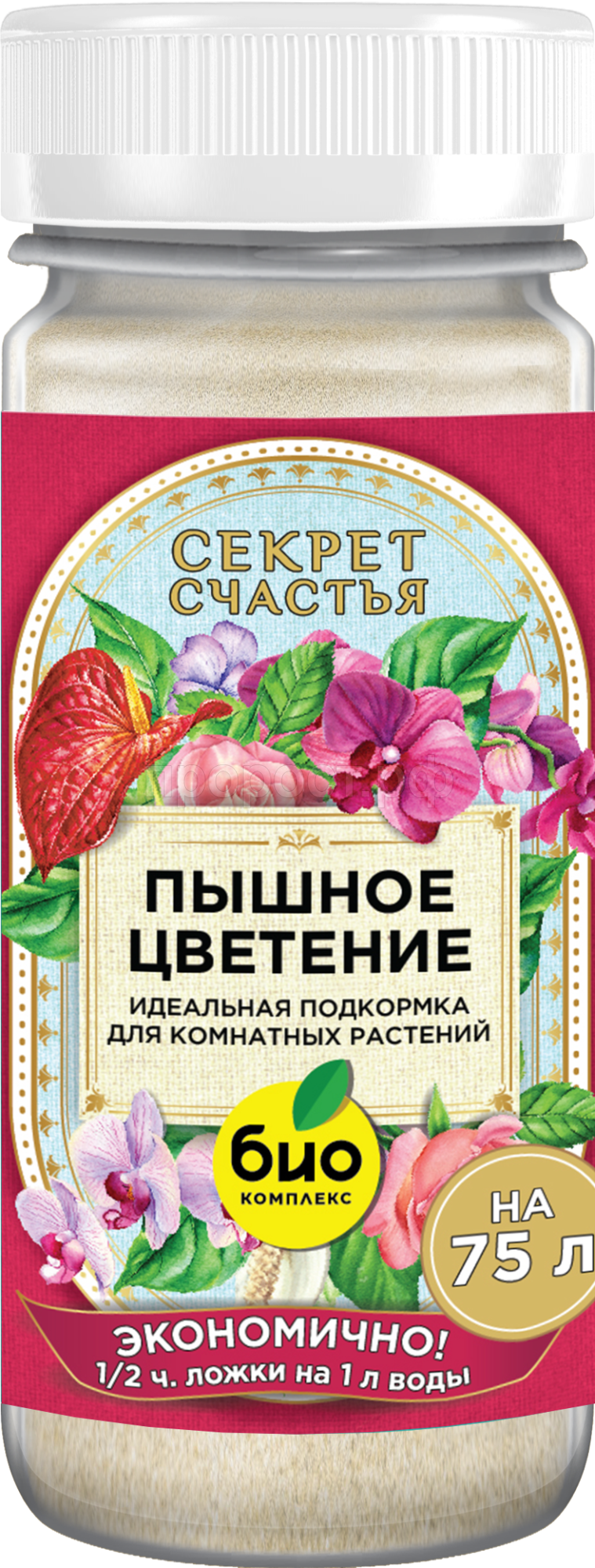 Секретная формула удобрения разработана с учетом повышенной потребности всех цветущих домашних растений в микро- и макроэлементах.