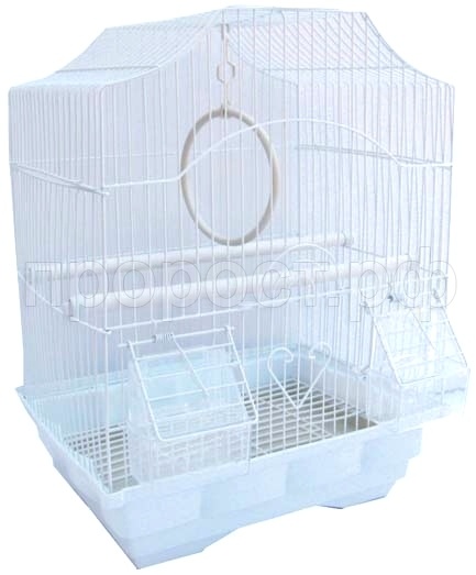 5.Животные доступны для заказа самовывозом из сети зоомаркетов "ПРОРОСТ". Питомцы не доставляется транспортной компанией.Полностью укомплектована необходимыми аксессуарами - 2 внешние кормушки, жердочки и качелька. Фигурная крыша подчеркивает индивидуальность дизайна этой клетки.