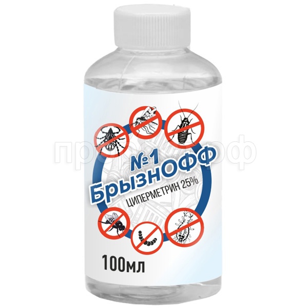 Средство инсектоакарицидное «БрызнОФФ-№1» содержит: циперметрин (25%), вспомогательные компоненты до 100%.